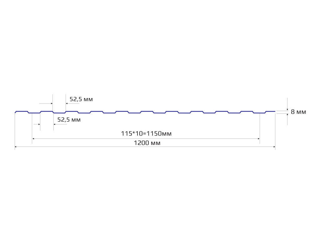 Вместе с тем, лист такого профиля имеет максимальную рабочую ширину - 1150 мм, благодаря чему упрощается монтаж и достигается минимальная стоимость квадратного метра.