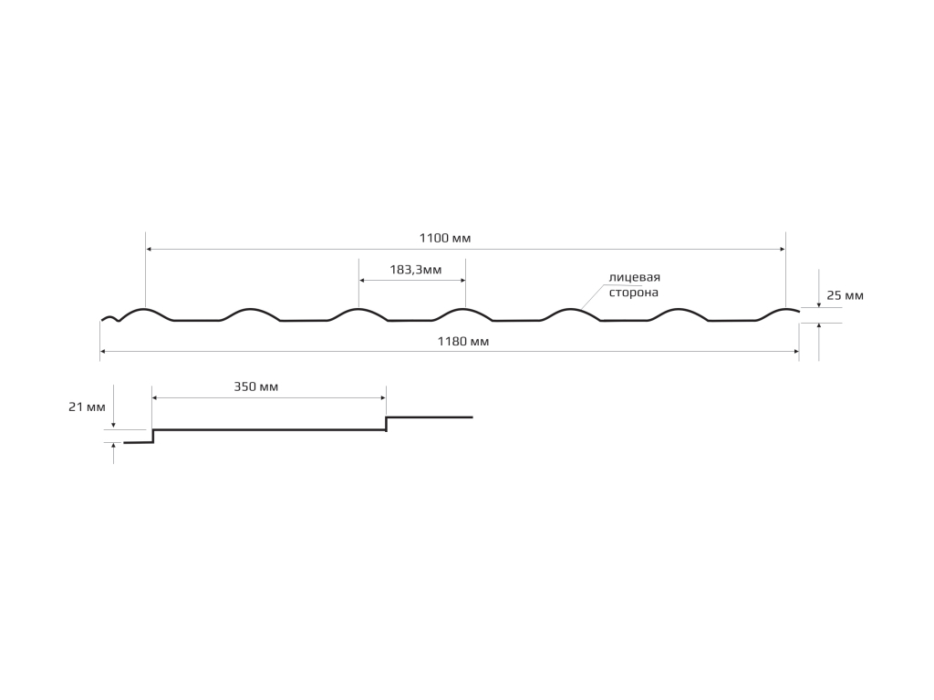 • Ширина листа общая 1180 мм