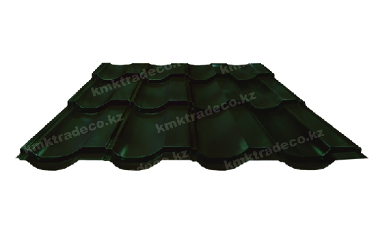 Металлическая кровля имеет максимальное сходство с натуральной черепицей. Листы изготовлены из тонколистовой стали толщиной 0.50 мм с МАТТ (матовым) покрытием премиум-класса – придаёт поверхности кровли необычный матовый «бархатистый» вид. Цвет – RAL 6007 Бутылочно-зеленый. Высота профиля – 25+/-1 мм.