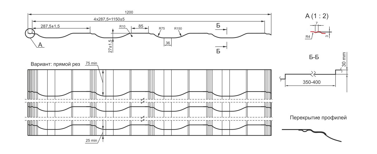 Металлочерепица Панорама – один из самых популярных видов данного кровельного материала. Металлическая кровля имеет максимальное сходство с натуральной черепицей. Листы изготовлены из тонколистовой стали толщиной 0.4 мм с полимерным защитным слоем. Цвет – RAL 3009 Красная окись. Высота профиля – 25+/-1 мм.