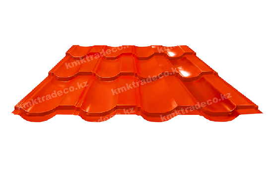 Металлочерепица Панорама – один из самых популярных видов данного кровельного материала. Металлическая кровля имеет максимальное сходство с натуральной черепицей. Листы изготовлены из тонколистовой стали толщиной 0.45 мм с полимерным защитным слоем. Цвет – RAL 2004 Чистый оранжевый. Высота профиля – 25+/-1 мм.
