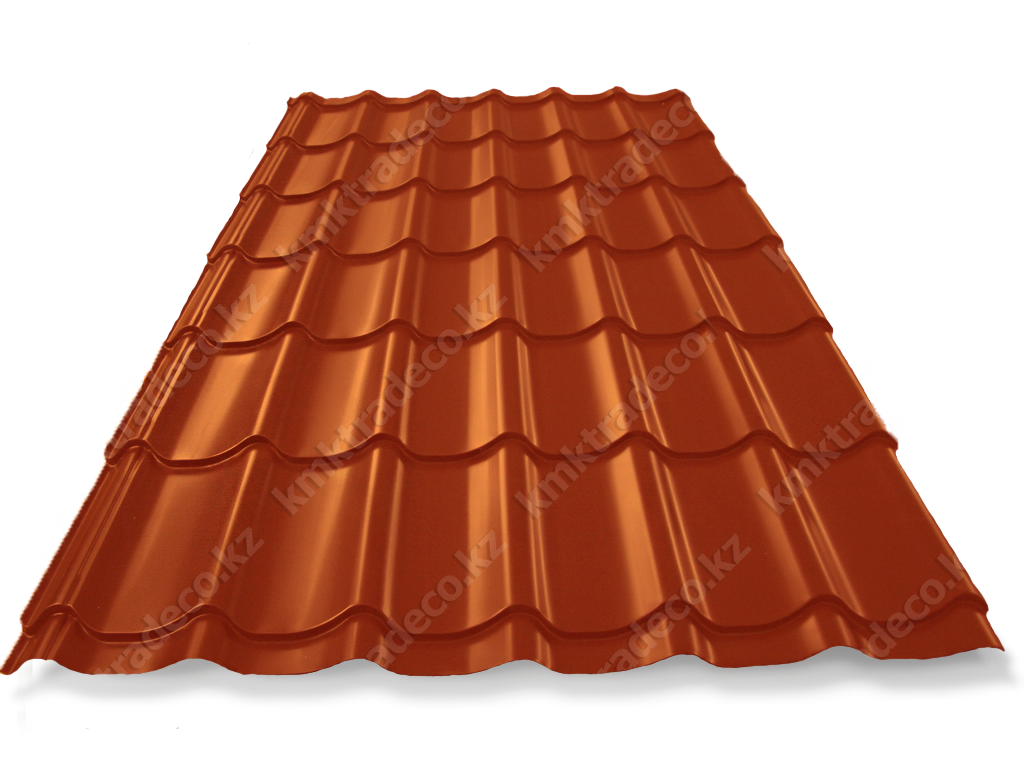 Металлочерепица Супермонтеррей – один из самых популярных видов данного кровельного материала. Металлическая кровля имеет максимальное сходство с натуральной черепицей. Листы изготовлены из тонколистовой стали толщиной 0.45 мм с полимерным защитным слоем. Цвет – RAL 8004 Медно-коричневый. Высота профиля – 25+/-1 мм.