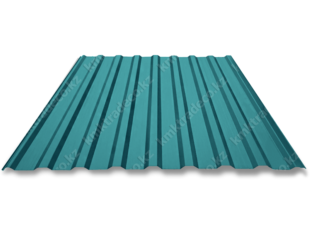 Профнастил НС-18х1150 - один из самых популярных материалов, используемых для изготовления заборов, стеновых облицовочных покрытий, перегородок быстровозводимых зданий. Цвет - 5021 Водная синь.