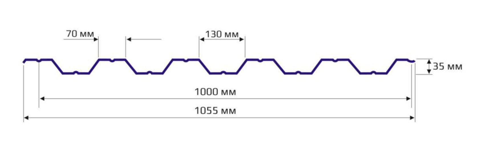 - Ширина листа общая 1055 мм