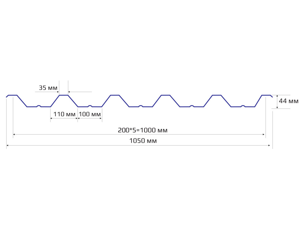Профнастил НС 44 1000 Полиэстер 0.45 RAL 5005